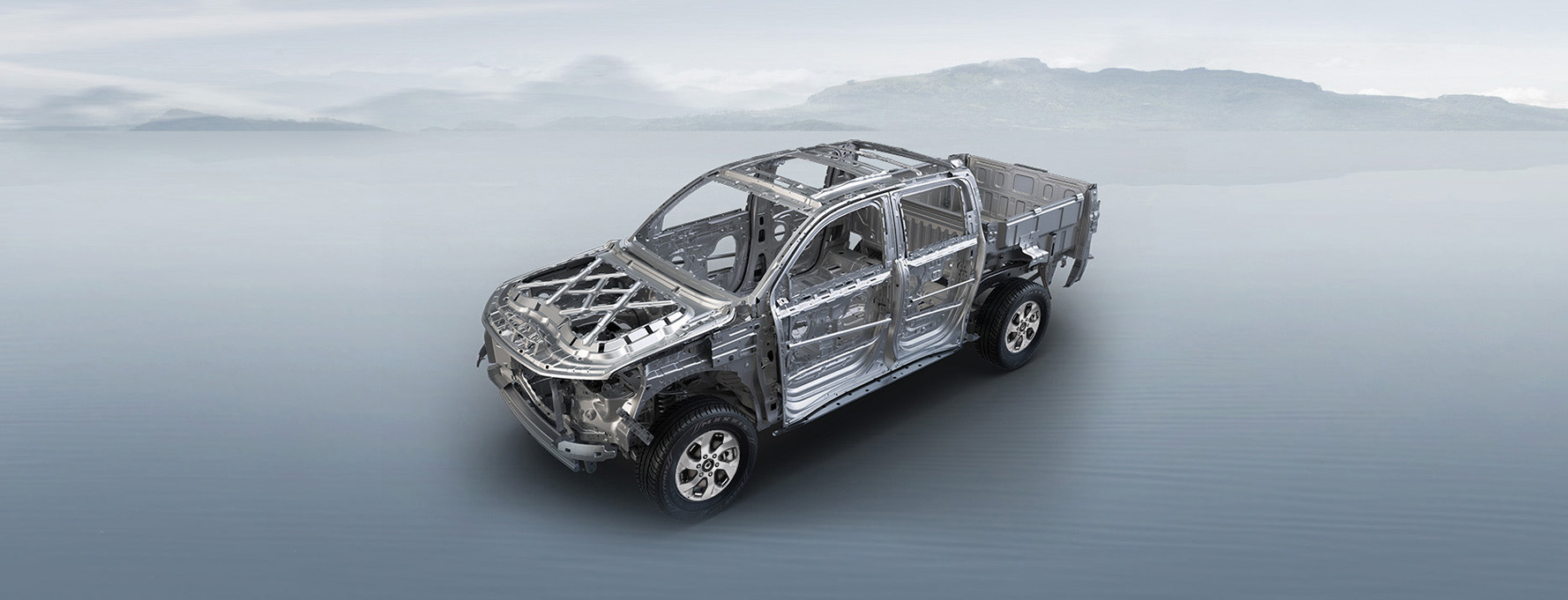 采用高强度笼型车身(车身分为溃缩吸能区及高强度座舱区,能在碰撞发生时吸收碰撞能量,有效减少驾驶室的变形)+梯形车架(车身骨架应用高强度钢)