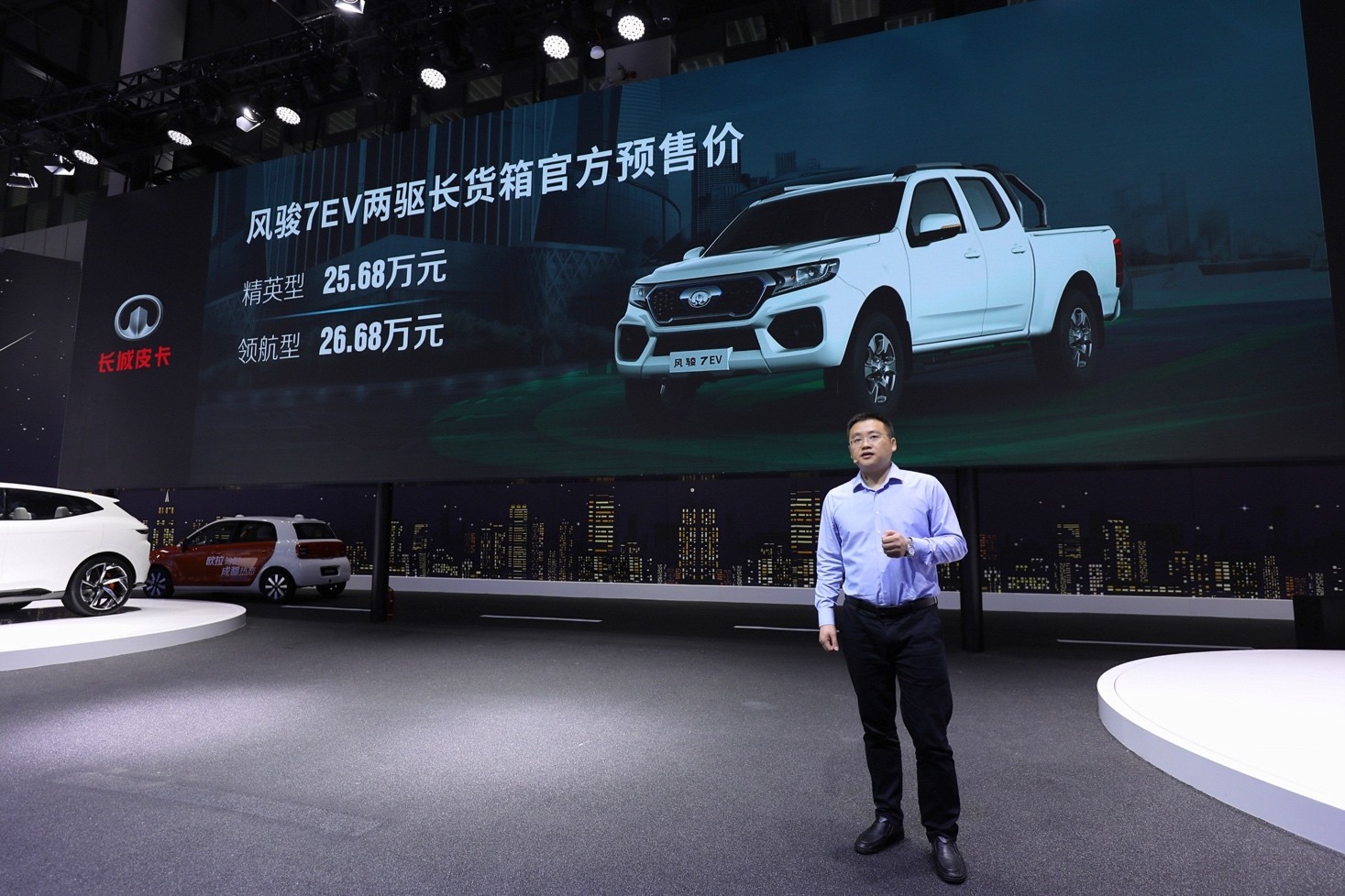 9月12日,长城皮卡风骏7 EV于成都国际车展正式开启预售,两驱长货箱官方预售价为精英型25.68万元、领航型26.68万元。风骏7 EV是基于PEi非承载电驱平台打造的纯电动皮卡,具备清洁高效、安全、强动力、高可靠性、高智能科技等特点。风骏7 EV的正式预售将全面加速长城汽车“新四化”进程,引领皮卡行业“清洁化”能源变革。